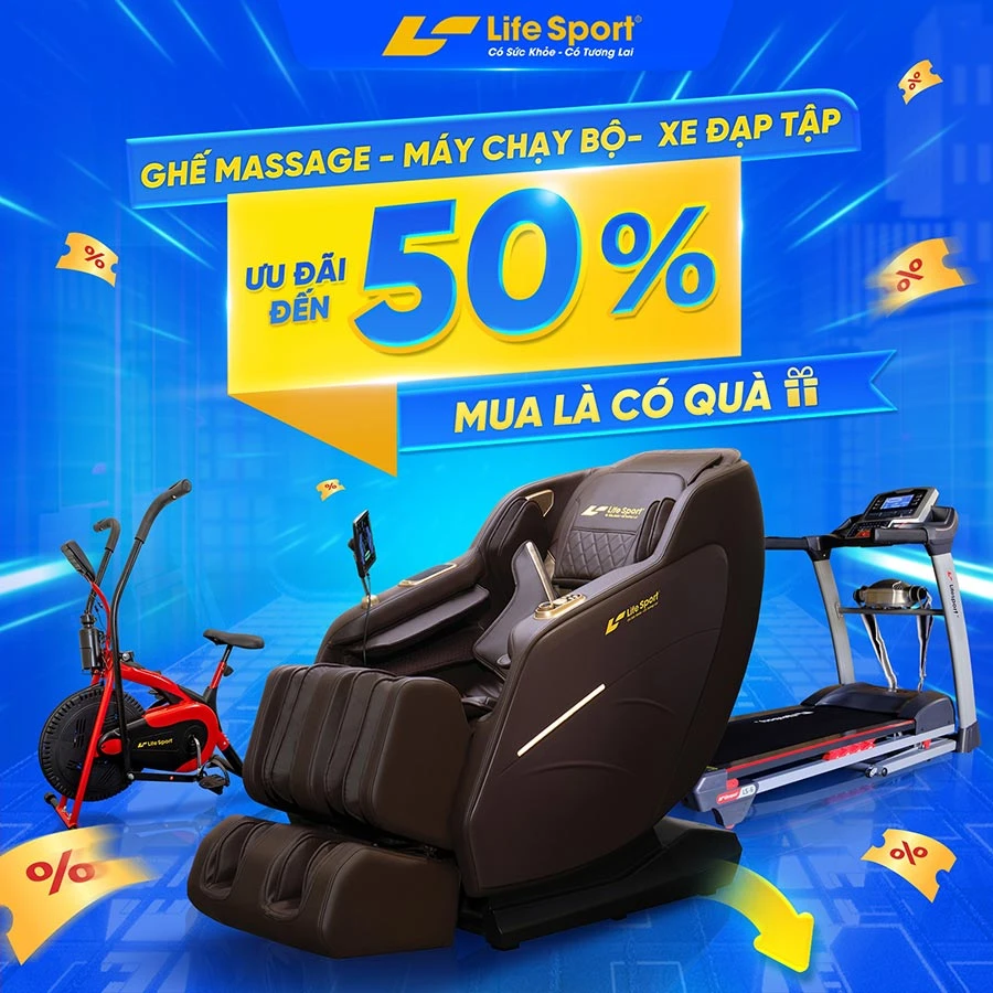 Cửa hàng ghế massage, máy chạy bộ và xe đạp tập Lifesport Đồng Nai trở thành sự lựa chọn hàng đầu của nhiều khách hàng bởi các chương trình ưu đãi hấp dẫn giảm sốc đến 50% diễn ra thường xuyên vào các dịp đặc biệt.