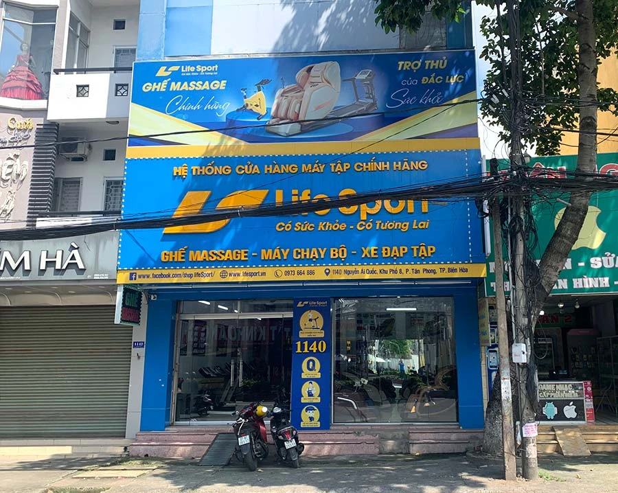 Tại Đồng Nai, cửa hàng ghế massage, máy chạy bộ, xe đạp tập Lifesport tọa lạc tại địa chỉ 1140 Nguyễn Ái Quốc, Khu Phố 8, Tân Phong, Biên Hòa, Đồng Nai.